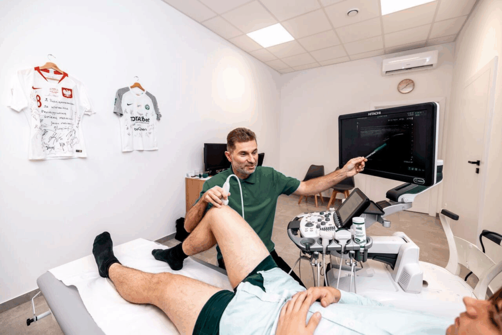 - iniekcje pod kontrolą USG (podanie leków, osocza bogatopłytkowego, kwasu hialuronowego, ewakuacja krwiaków i wysięków).